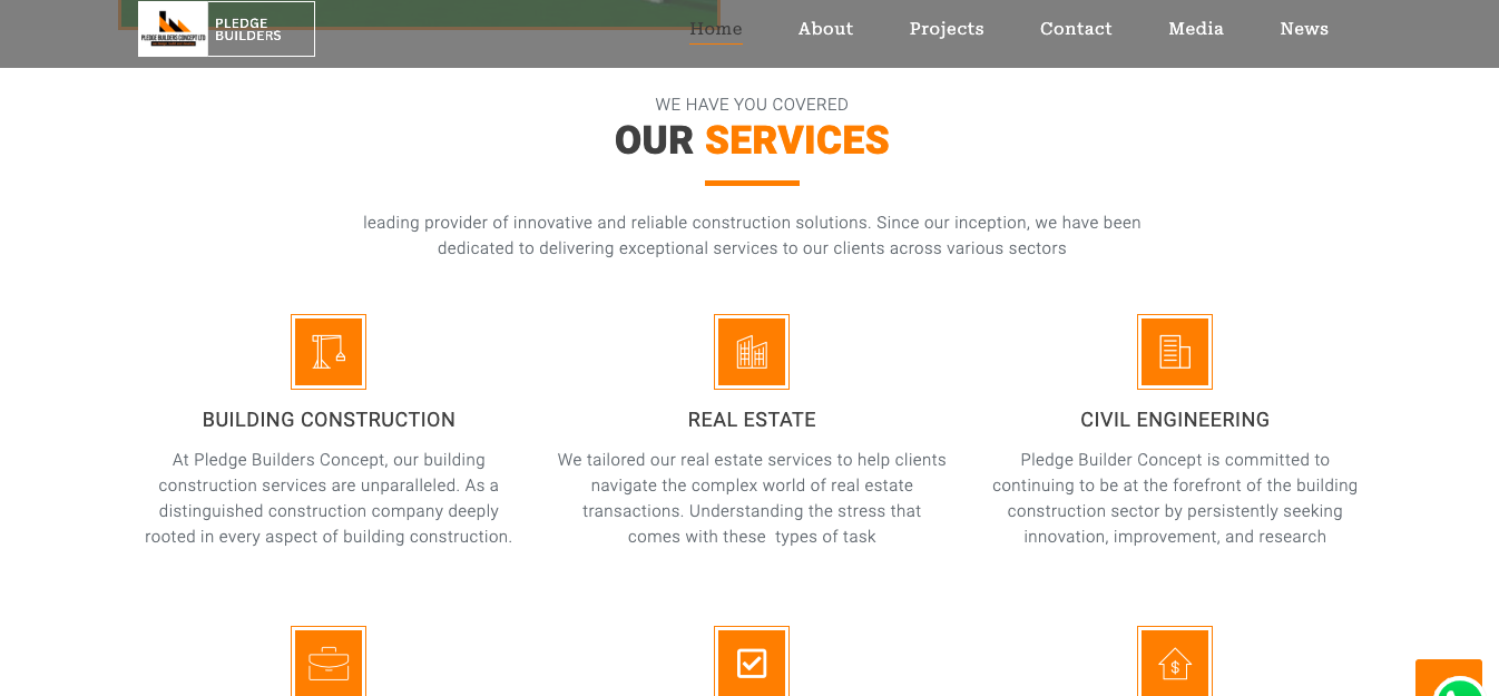 We designed a professional digital presence for PledgBuilders to reflect their credibility in engineering, construction, and real estate project management.